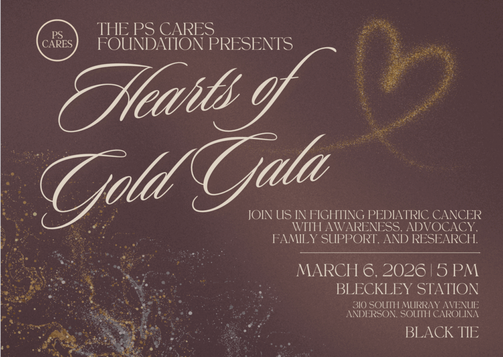 The PS. Cares “Hearts of Gold” Gala will be an evening of impact! The proceeds will benefit the care and wellness of pediatric cancer patients and pediatric cancer research, through St. Jude Children’s Research Hospital, The Mya Lin Terry Foundation, and a few non-profits in South Carolina that share our mission.